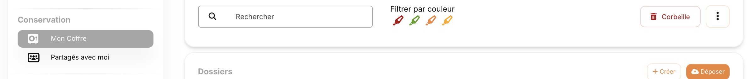 Conservez vos documents dans votre coffre personnel, ou bien partagez les avec qui vous voulez depuis des espaces ou des dossiers partagés.